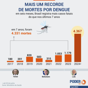 Este ano já representa o pico histórico da doença no país, superando o recorde anterior de 2023, que registrou 1.179 óbitos. A situação se agrava com 6,237 milhões de casos prováveis até a última quarta-feira, 3 de julho de 2024, o maior número já registrado até o momento.