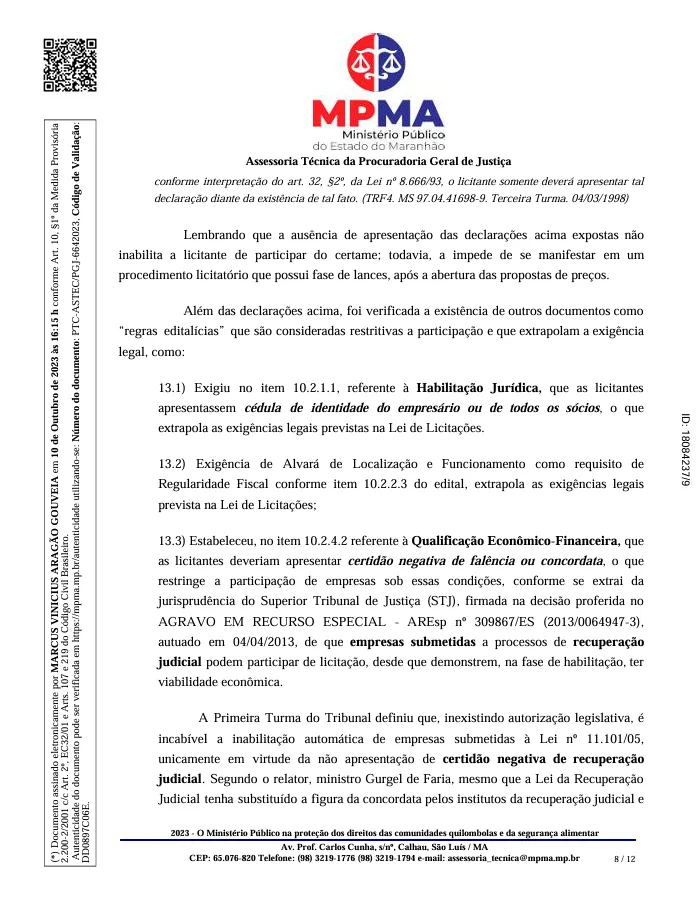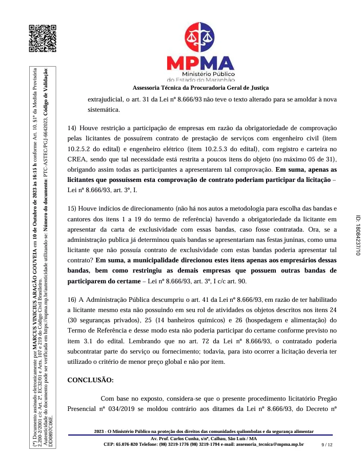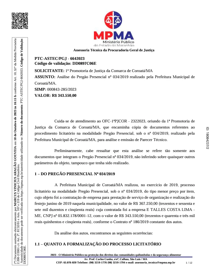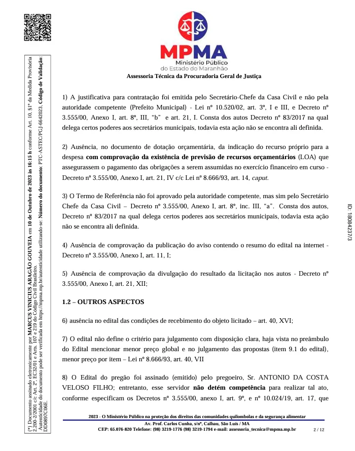 O ex-prefeito de Coroatá, Luís Mendes Ferreira Filho, e o empresário Énio Tales Costa Lima estão no centro de uma ação civil por improbidade administrativa movida pelo Ministério Público do Estado do Maranhão. A investigação aponta para possíveis irregularidades que resultaram em dano ao erário e violação dos princípios administrativos.