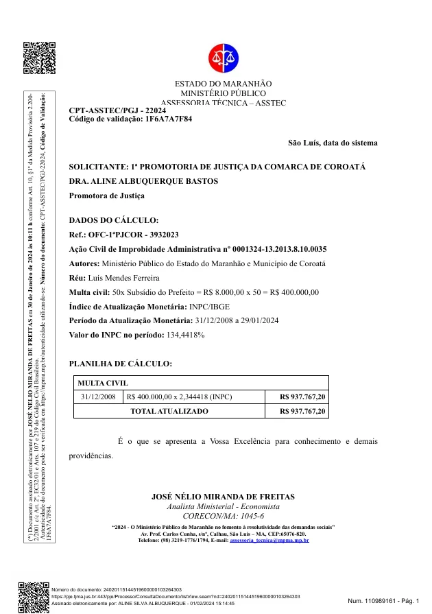 Coroatá (MA) – Em decisão judicial proferida pela juíza Anelise Nogueira Reginato, da 1ª Vara de Coroatá, o ex-prefeito do município, Luís Mendes Ferreira, foi condenado por improbidade administrativa em razão de irregularidades na prestação de contas de diversos convênios firmados com a Secretaria de Estado da Saúde entre os anos de 2005 e 2008. A sentença é parte de uma ação movida pelo Ministério Público do Maranhão (MP-MA) e pelo próprio Município de Coroatá, que acusaram o ex-gestor de falhas que resultaram em prejuízos aos princípios da administração pública.
