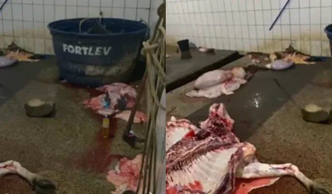 De acordo com o Ministério Público, a análise técnica de vídeos e fotografias anexados ao procedimento revelou situações consideradas de “gravidade ímpar”. Entre as irregularidades apontadas estão o abate e o esquartejamento de bovinos diretamente no solo, em ambiente insalubre, além da presença de cães na área de abate, consumindo restos de carcaças e tendo contato com a carne destinada ao consumo humano.