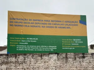O Ministério Público do Maranhão instaurou uma Notícia de Fato para investigar possíveis irregularidades e dano ao erário na execução de uma reforma escolar no município de Arame. O alvo da apuração é o contrato firmado entre a prefeitura local e a empresa Toquio Construções e Serviços Ltda., destinado à adequação do Grupo Escolar Deputado Cid Carvalho, localizado no Bairro Vila Nonato.