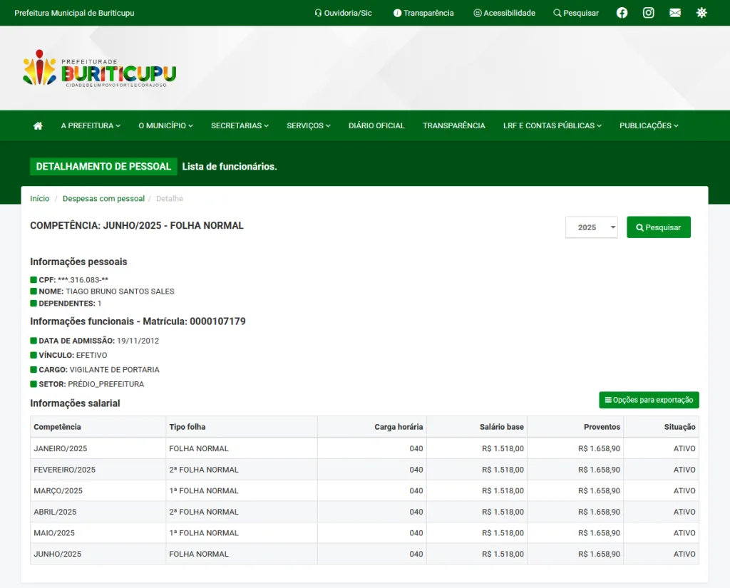 - A solicitação de documentos ao Departamento de Recursos Humanos da Prefeitura de Buriticupu, incluindo ficha funcional completa, registros de frequência e comprovantes de pagamento referentes aos últimos cinco anos;