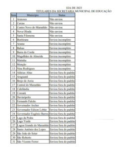A inspeção abrangeu vários municípios do Maranhão, revelando que a maioria não enviou os dados necessários. Confira a lista completa abaixo: